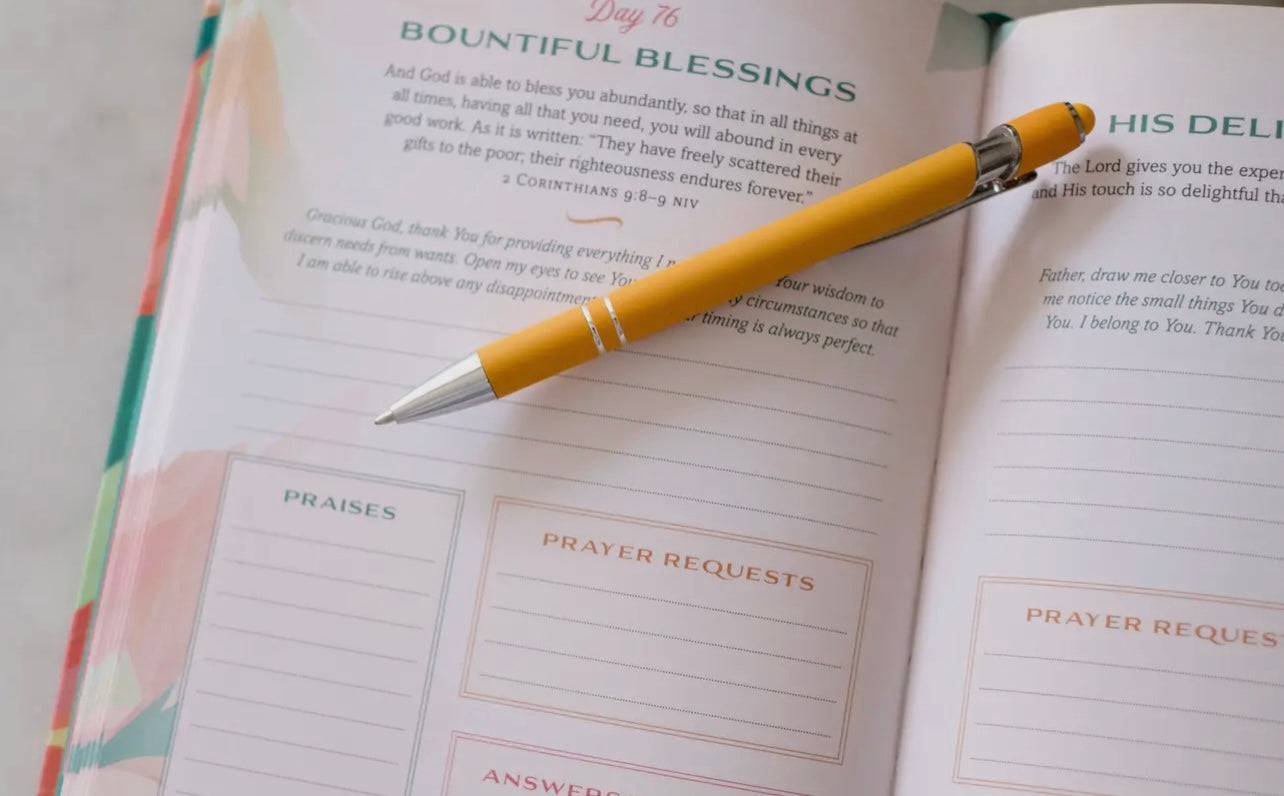 This Practical and Encouraging Prayer Tracker Will Help You Celebrate God’s Goodness Here's a charming keepsake journal that provides you with encouragement, inspiration, and space to reflect. This unique prayer and praise tracker features scripture, faith-building quotes, and encouraging prayers alongside dedicated space to journal your prayer requests, answers to prayers, and praise of God's goodness every day. At the end of the year, you'll see just how your Father God worked in your life—in beautiful and sometimes unexpected ways!
